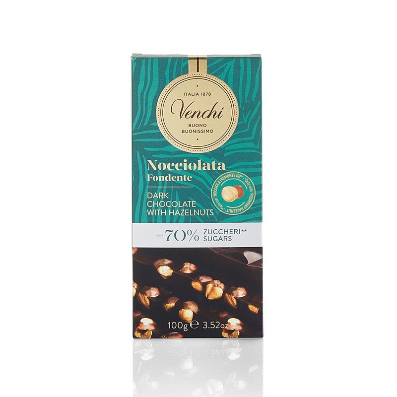 Venchi -70% Sugars Dark Chocolate Hazelnut Chocolate Bar 3.52oz