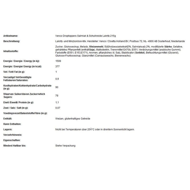 | Manufacturer: | Hersteller: Venco / Cloetta Holland BV, Postbus 72, NL- 4900 AB Oosterhout, Niederlande |