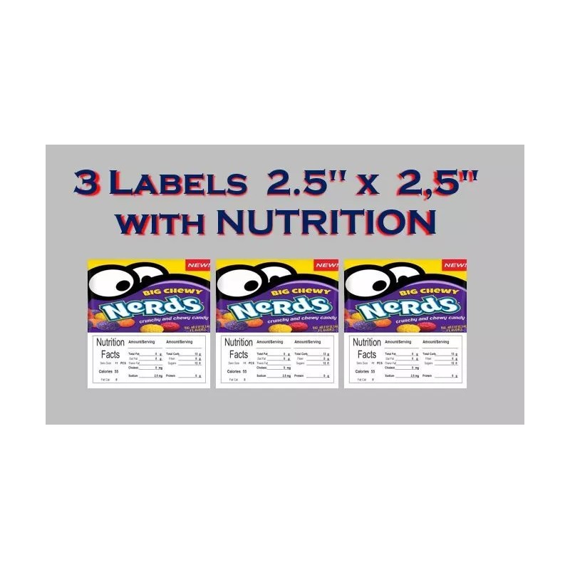 Vendstar 3 pack VENDING MACHINE CANDY LAMINATED (non adhesive) LABELS with NUTRITION