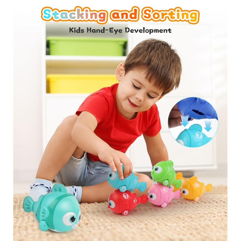 - FUN FULL OF MAGNETIC FISH TRAIN : A big fish leads 5 small fish to walk together in your indoor, it can be used as a train toy, let your child easily push the fish to move.
