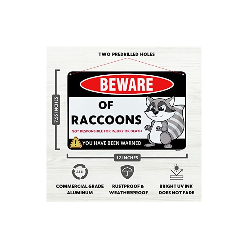 - One of a kind design: Each sign we make has original illustrations and has been thoughtfully made with you in mind, perfect purchase for all occasions! Beware of raccoons - Not responsible for injury or death - You have been warned.