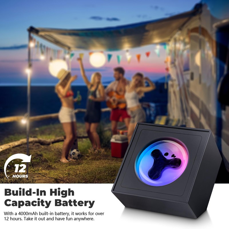 - Compact & ColorfulFeaturing a compact box design and a tactile painted surface. Built-in RGB light, you can choose the color you like. It will change colors automatically or stay on a solid color by pressing the on/off button, it's also a unique deco lamp on your desk.