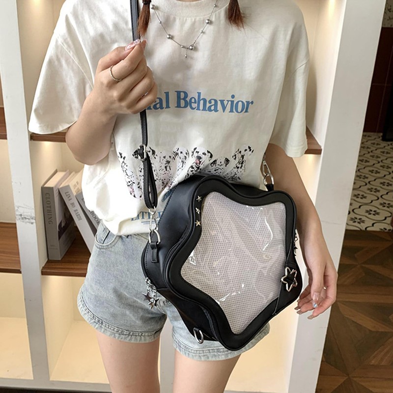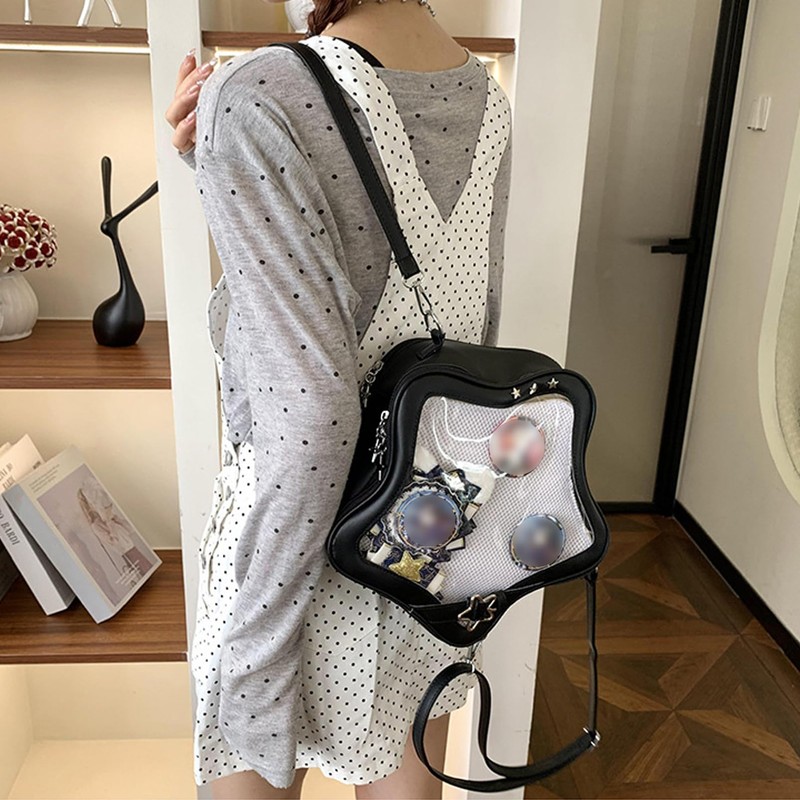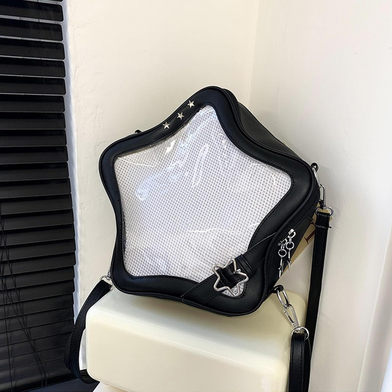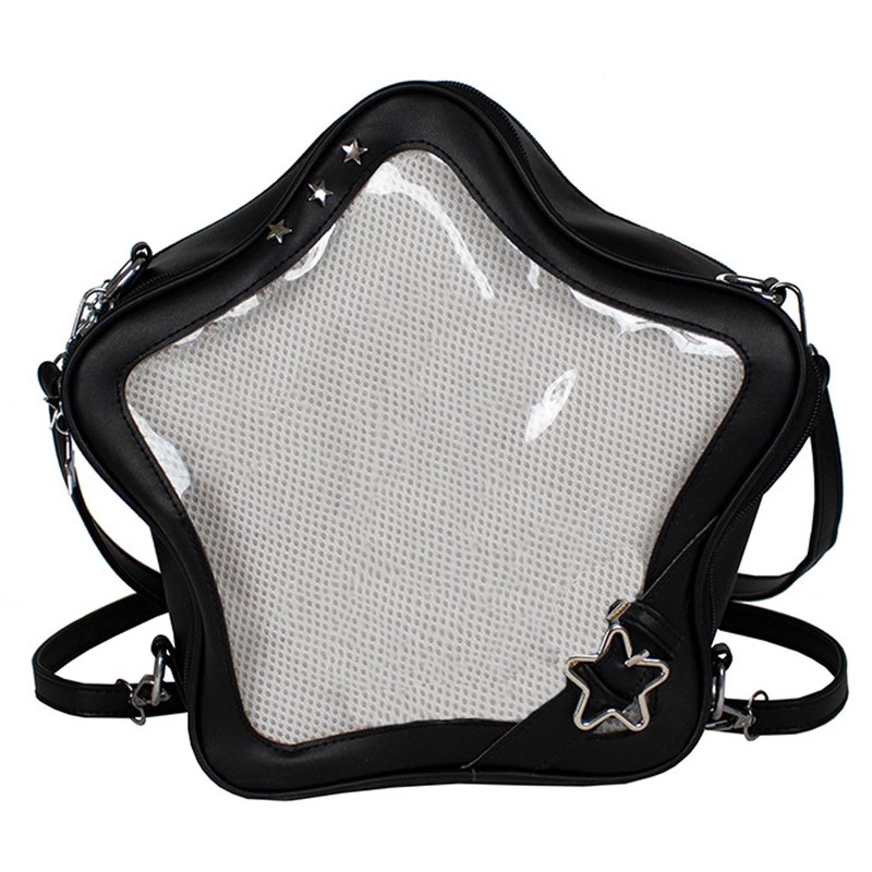 Vensivy Star Shape Ita Bag - Women's Crossbody Backpack Purse, PU Leather Cute Aesthetic Handbag for Pin Insert Display (Black)