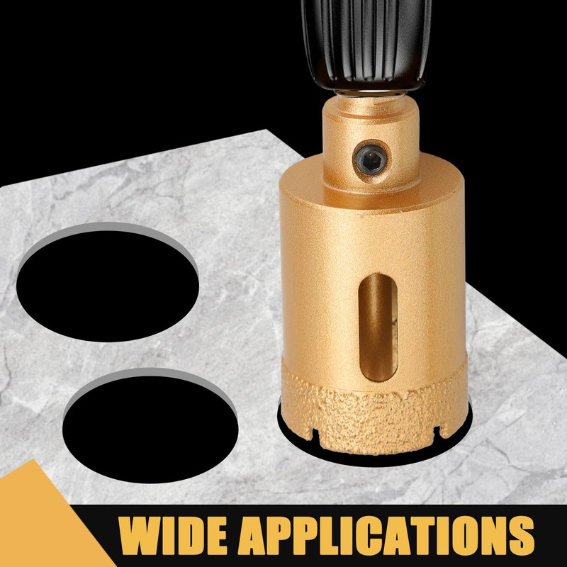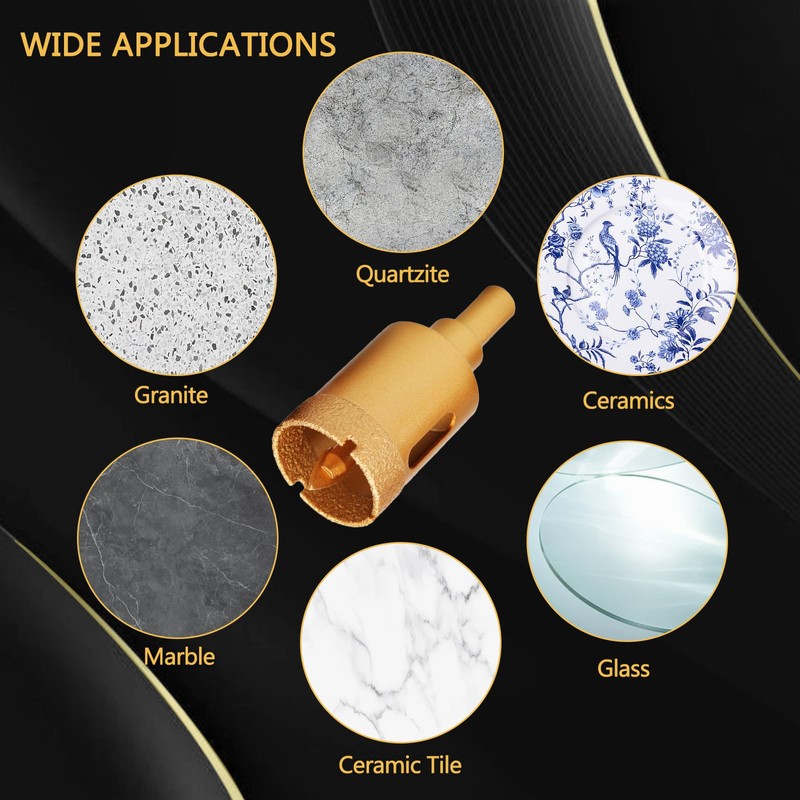 - 【Dry Drilling】Dry drilling is ok for Ceramic, Porcelain, Tile, Glass, Granite Quartz, Marble, Gemstone