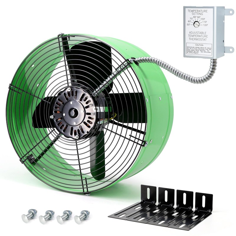 Vent Attic Fan with Adjustable Thermostat, 15" Gable Mount Ventilation Exhaust Fan 1650 CFM, 1075 RPM, 2500 SQ. FT. Attic Ventilator Green for Gable, Shed, Home
