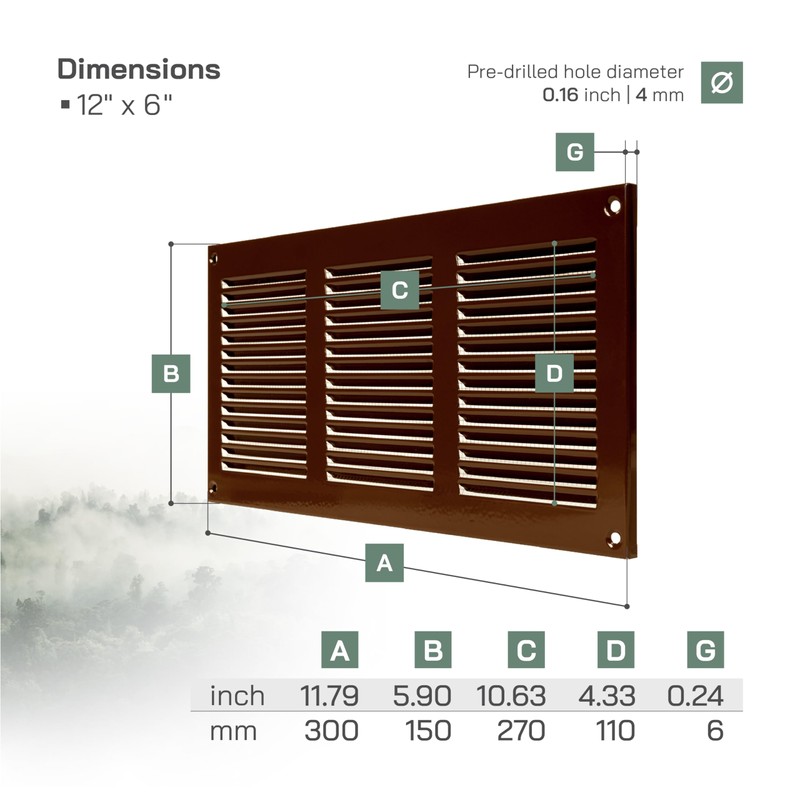 Vent Systems 30x15cm Air Vent Covers - Brown - Metal Air Return Grille with Built in Pest Protection Screen