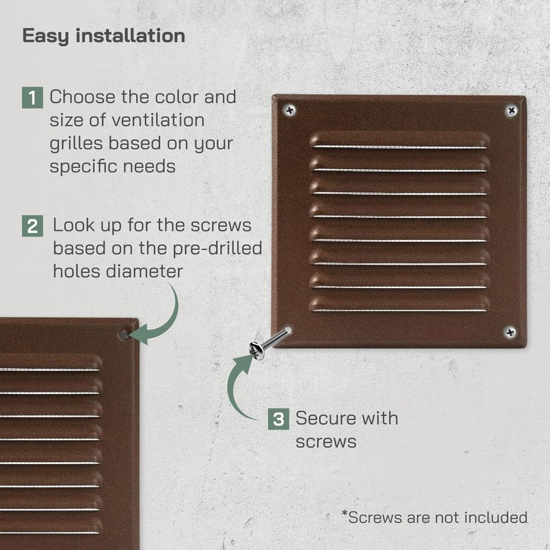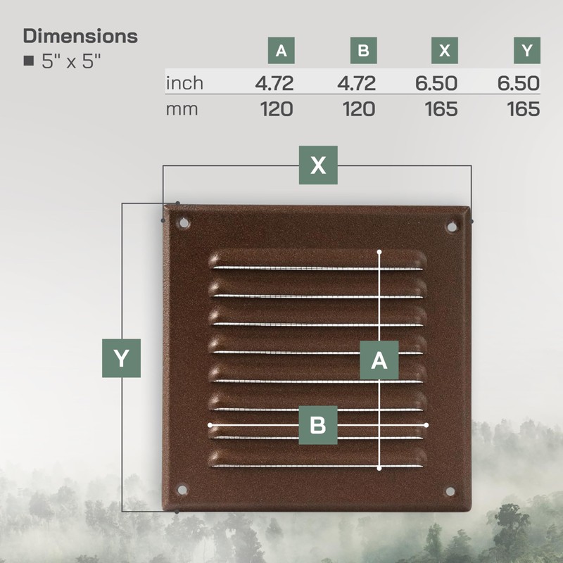 Vent Systems - 5" x 5" Inch (Opening Dimensions) Pack of 2 Brown Metal Square...