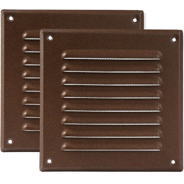 Vent Systems - 5" x 5" Inch (Opening Dimensions) Pack of 2 Brown Metal Square Soffit Air Vent Grille Cover - Built-in Insect Screen - HVAC for Home Improvement 6.5" x 6.5" Inch (Outer Dimensions)