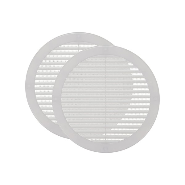 Vent Systems 8" Inch (Opening Dimensions) Pack of 2 White Soffit Vent Cover - Plastic Round Air Vent Grille - Built-in Insect Screen - HVAC for Bathroom, Home, Kitchen 9.5" Inch (Outer Dimensions)