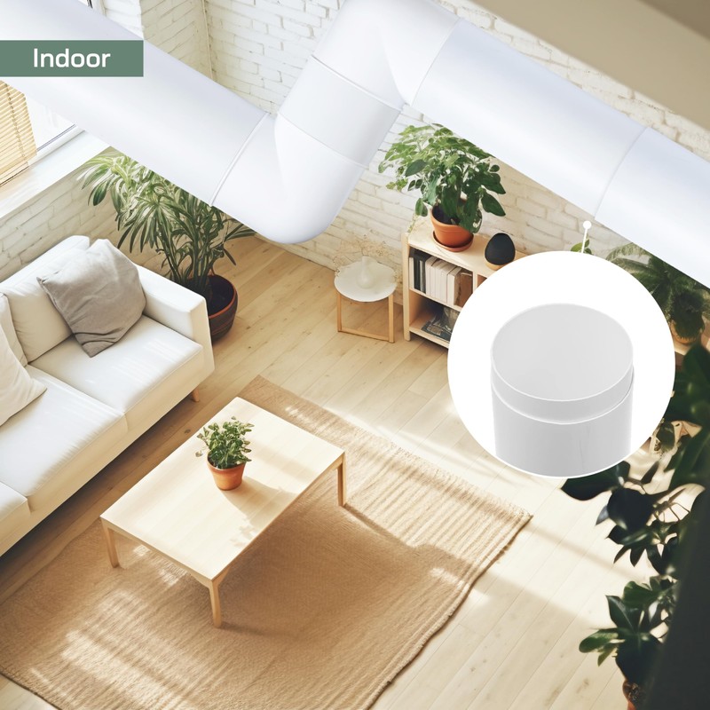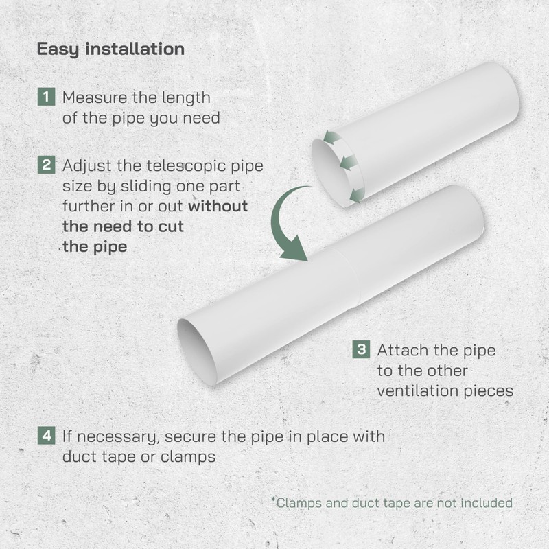 - Straight, round adjustable ventilation pipe, made of durable and lightweight plastic material. Color: white.