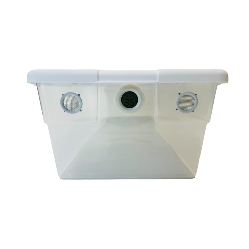 - Measurements are 16.75"L x 11.875"W x 7"H (approx) with (4) 1 Inch White Vents and 1 Hygrometer Sensor