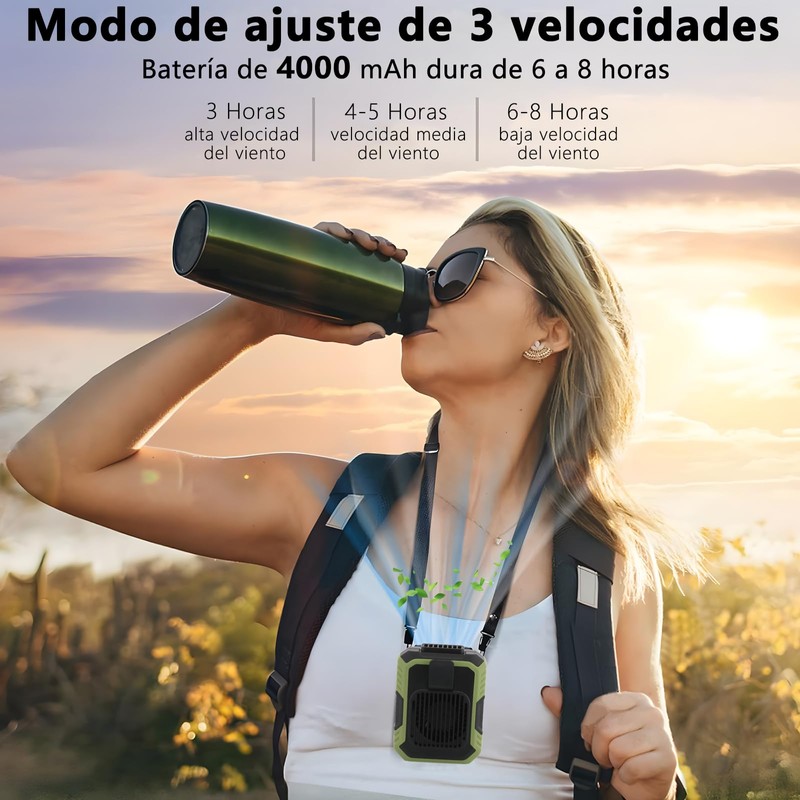 Ventilador de Cuello,4000mAh Ventilador De Mano,Abanico Recargable Con Modo De Ajuste De 3 Velocidades,Se puede utilizar como fuente de alimentación móvil y linterna,Ideal Para Viajes, Deportes