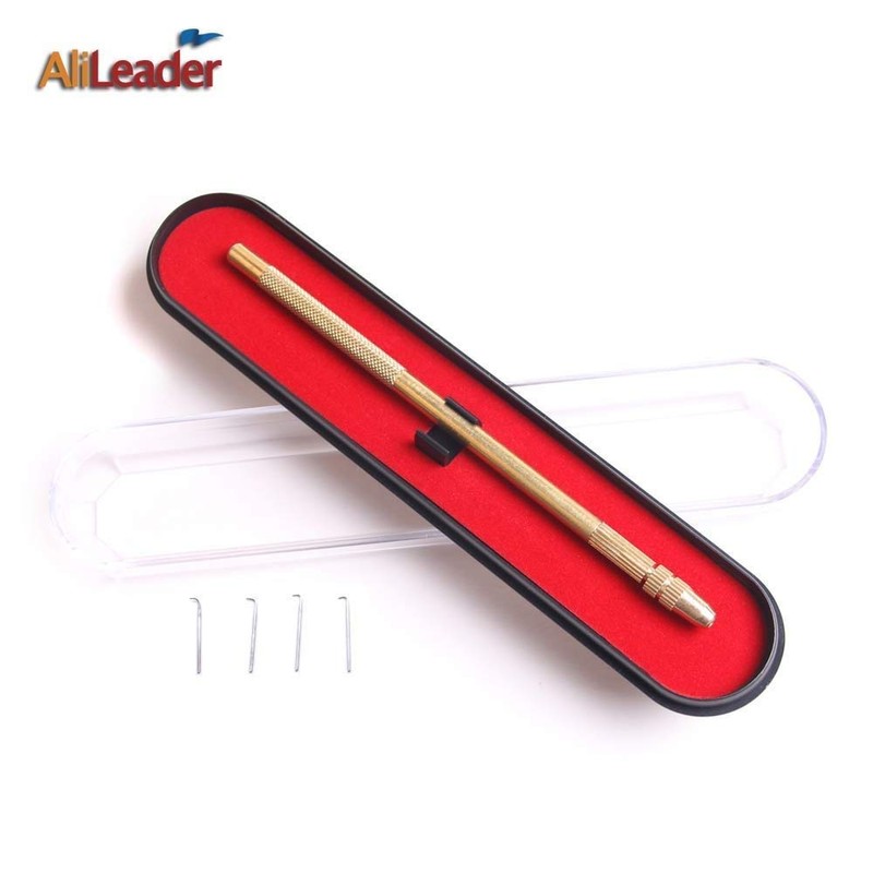 Ventilating Needle for Lace Wig - AliLeader Brass Ventilating Holder and 4 Different Size Stainless Steel Needles (1-1, 1-2, 2-3, 3-4) for Make/Repair Lace Wig