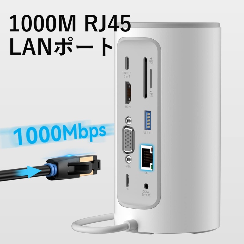 - UCB-C Docking Station 12in-1 for USB Type-C devices. USB-C to HDMI / VGA / USB 3.1 Gen 1-C / USB 3.0x3 / RJ45 / SD / TF / TRRS 3.5mm / PD / DC 12 in 1 can be used for a variety of purposes. (Please check the product content page below for content per port.)