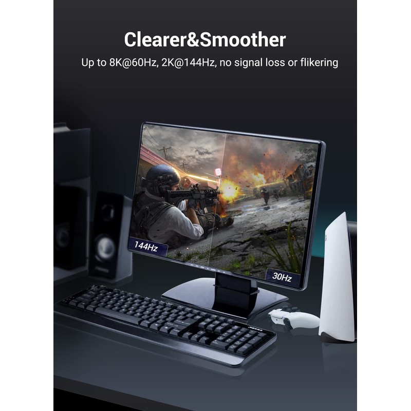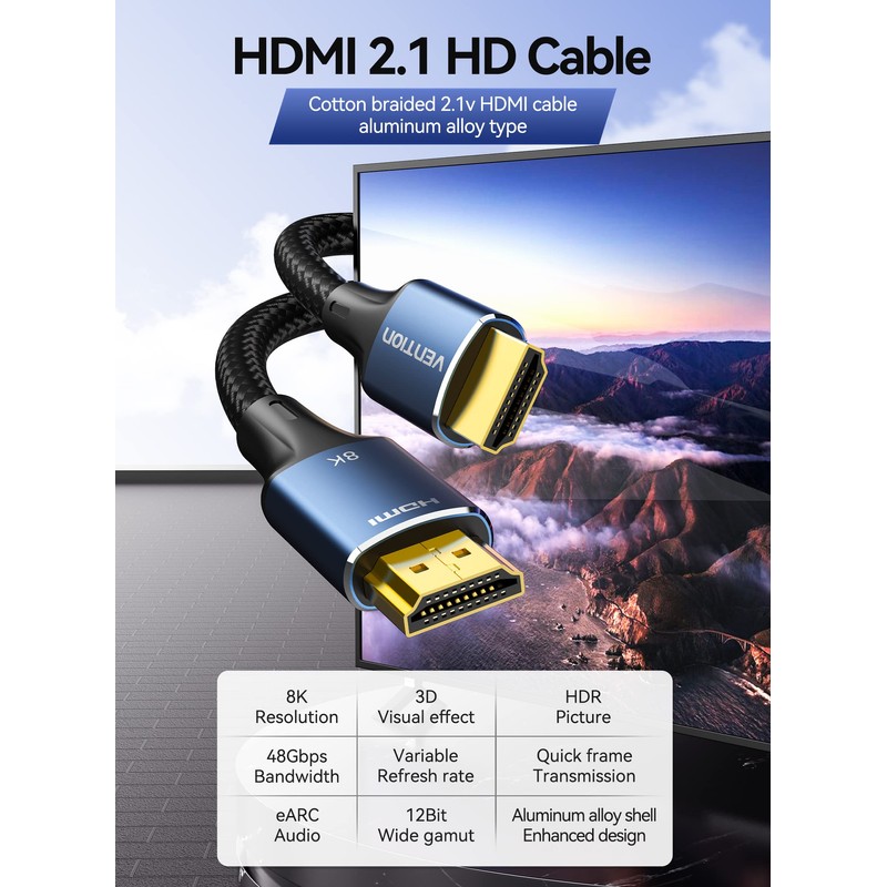- 8K@60Hz HDMI Cable: VENTION 8K HDMI 2.1 cable supports 8K@60Hz, 4K@144Hz/120Hz/60Hz, and the advanced technology significantly improves the clarity and sharpness of the image. Backwards compatible with HDMI 2.0b/2.0a/2.0/1.4/1.3/1.2/1.1 versions. NOTE: In order to achieve the 8K standard, please make sure your both devices support 8K.