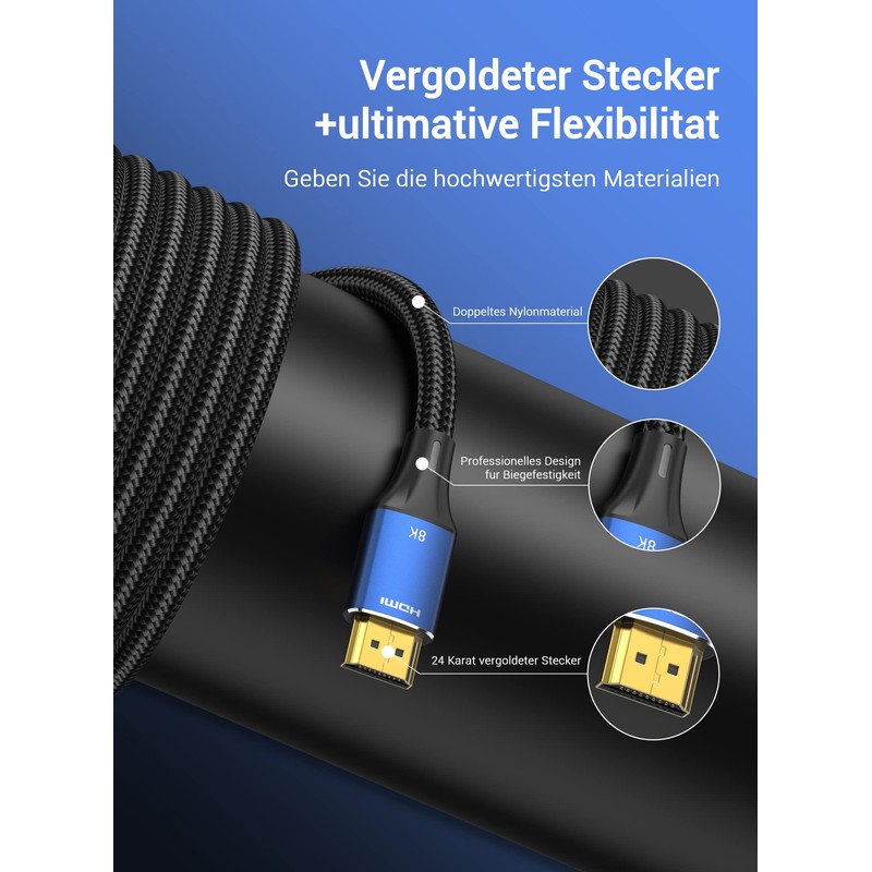 - Triple Shielded & Durable: The copper-coated steel cable and triple EMI shielding are used to ensure stable and fast transmission of data required for 8K UHD. Gold-plated, corrosion-resistant connectors ensure the best picture and sound quality.