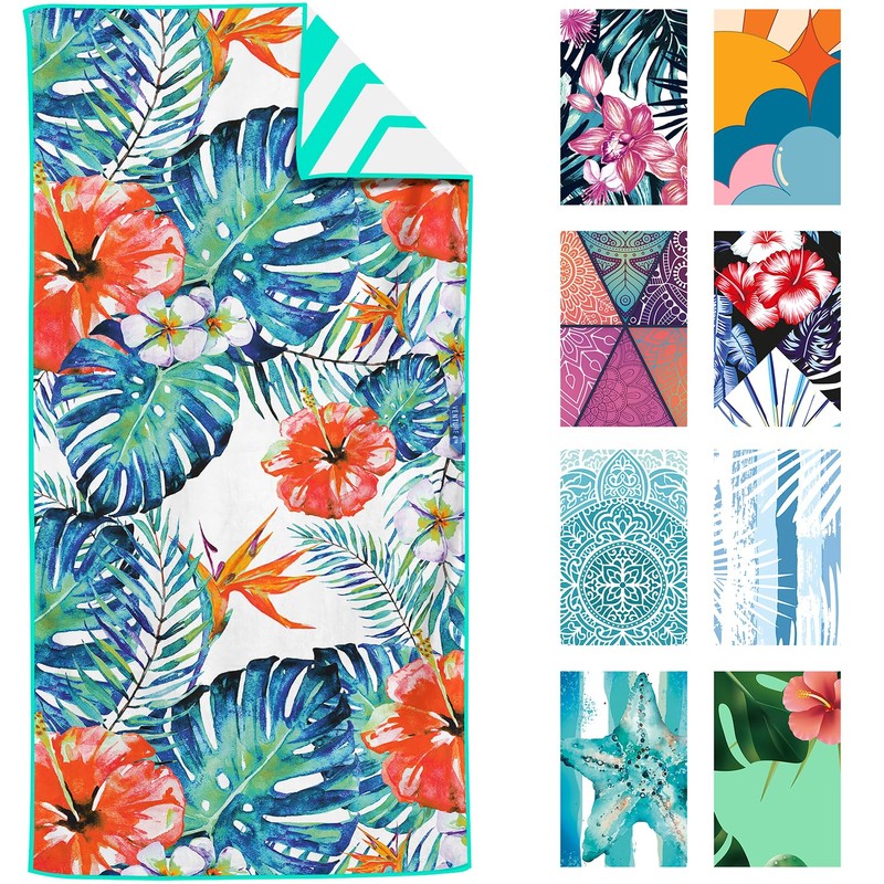 VENTURE 4TH Microfiber Beach Towel: Quick-Dry, Compact, Sand-Free, Absorbent, Sandproof and Lightweight - Perfect for Camping, Beach, and Roadtrips (Tropical Heat Design | 35x78 inches)