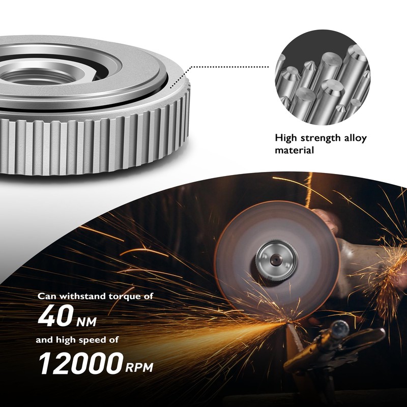 - Quick-release nuts: Quick release nuts with M14 thread for quick attachment and loosening of diamond cutting discs, pot washers, grinding wheels and other accessories.