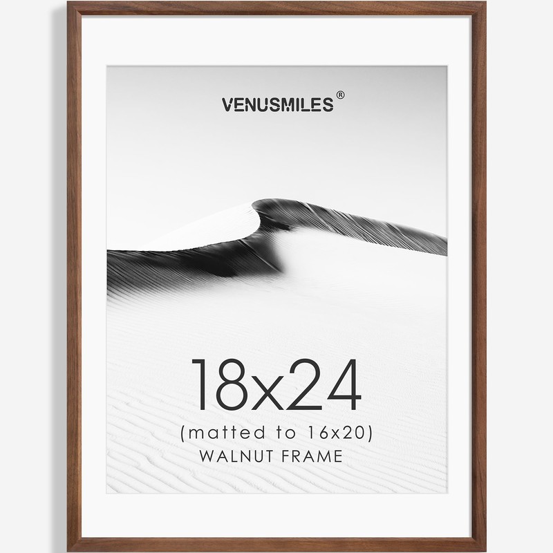 Venusmiles 18x24 Poster Frame Natural Solid Walnut Photo Frames with 16x20 Removable Mat Wall Hanging Large Handcrafted Frame with HD Plexiglass Wall and Tabletop Display Large Picture Frame