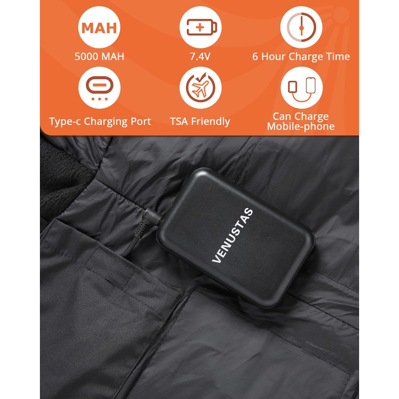 - EASY TRAVEL & IDEAL GIFT: Package includes 1* heated puffey jacket, 1* battery pack and 1* travel bag. Venustas carbon fiber heating tech makes it stand out from the crowd of men's lightweight packable coats. It's a fun and practical gift for family and friends!