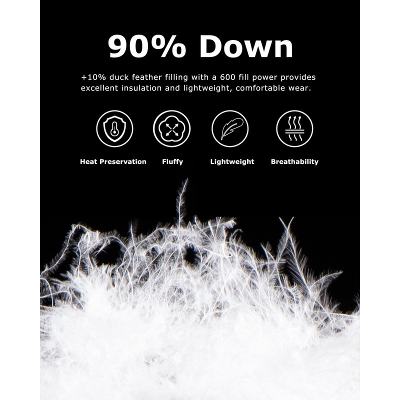 - BUILT FOR COMFORTABLE: Venustas down collection is designed for lightweight warmth. This heated puffer jacket for men is filled with 90% down, giving it excellent thermal insulation performance. The hood's drawstring is hidden in the lining, making this electric jacket look neat and stylish.