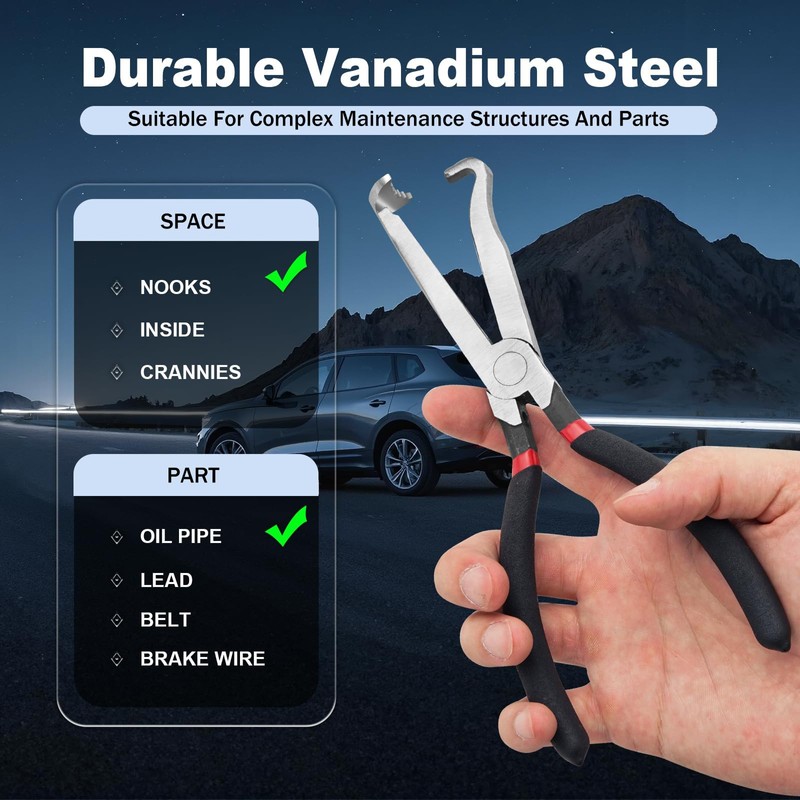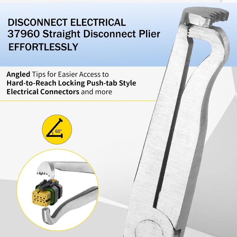 - 【Precision Connector Removal】Our electrical connector pliers are specifically engineered for the effortless removal of locking push-tab connectors on various automotive components like sensors, fuel injectors, and ignition coils. Featuring a 60-degree angle and right-angle designs, these electrical disconnect pliers allow for easy one-handed control, making them perfect for tight spaces in all vehicles