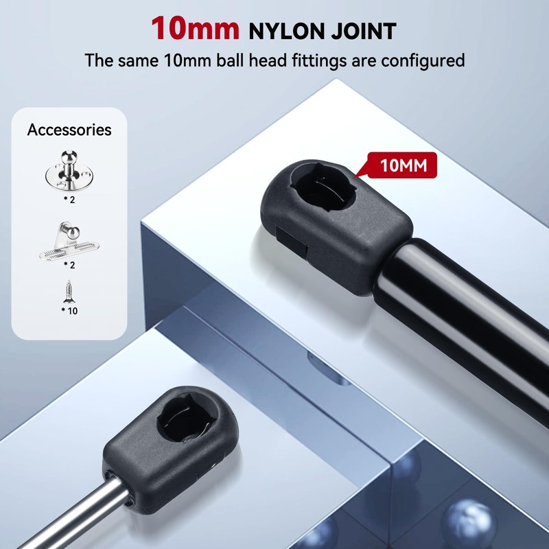 • [Product Feature] Help small and light projects to open the lid or door slowly and softly, and keep it up. The package arrived with 2 shocks, 4 mount brackets, and 10 screws