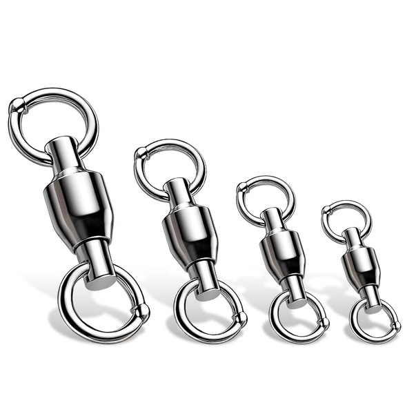 - đ ăSmooth Bearing & 360° RotationăThe high-speed ball bearing design of the Ball Bearing Fishing Swivels with Strong Welded Rings ensures smooth rotation of the bearing latch, allowing for smooth connections and easier use, ensuring smoother and faster rotation, so you can easily catch more fish