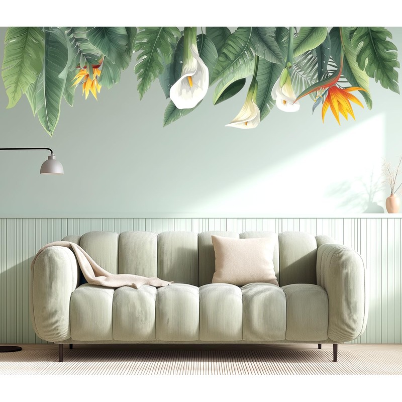 VePret Large Flowers Leaves Wall Decals Peel and Stick, Floral Jungle Tropical Wall Stickers, Removable Vinyl Home Decor Art for Bedroom Living Room Classroom Office
