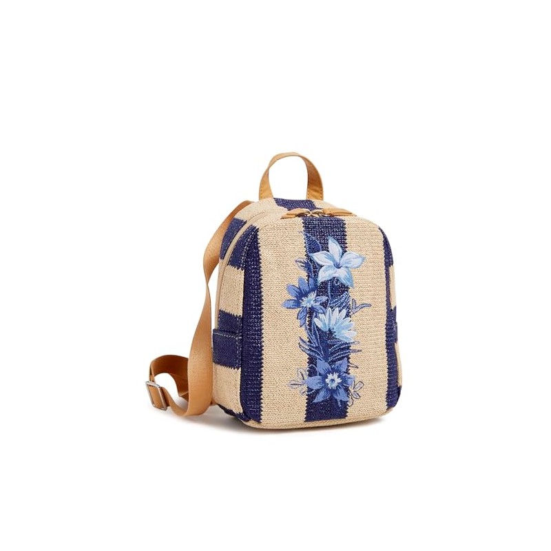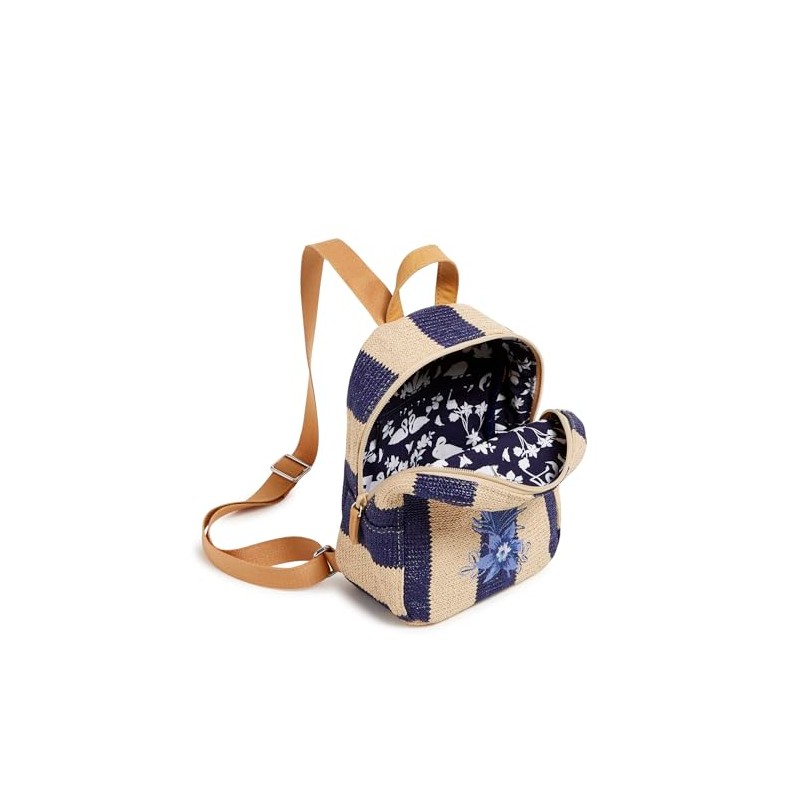 Vera Bradley Mini Backpack, Navy Stripe Straw