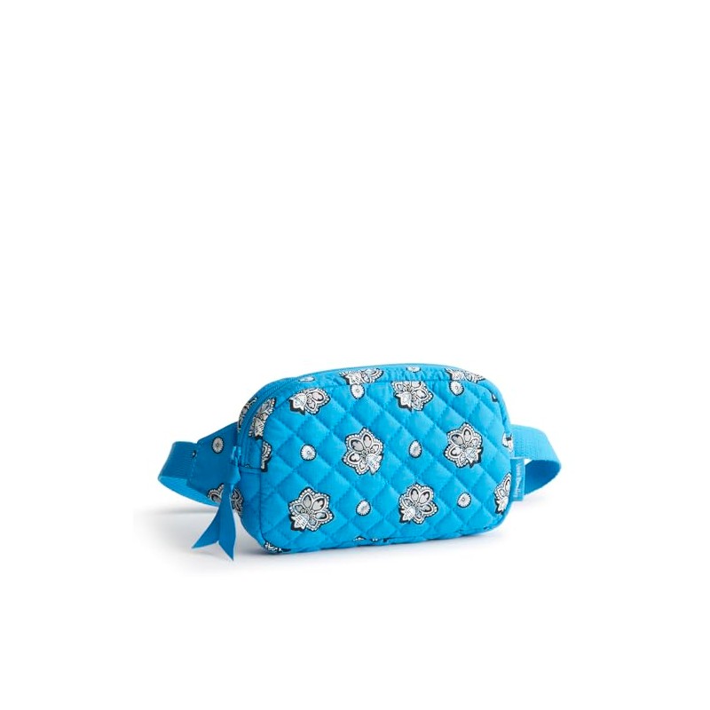 Vera Bradley Premium Cotton Mini Belt Bag, Blue and Silver Bandana Paisley