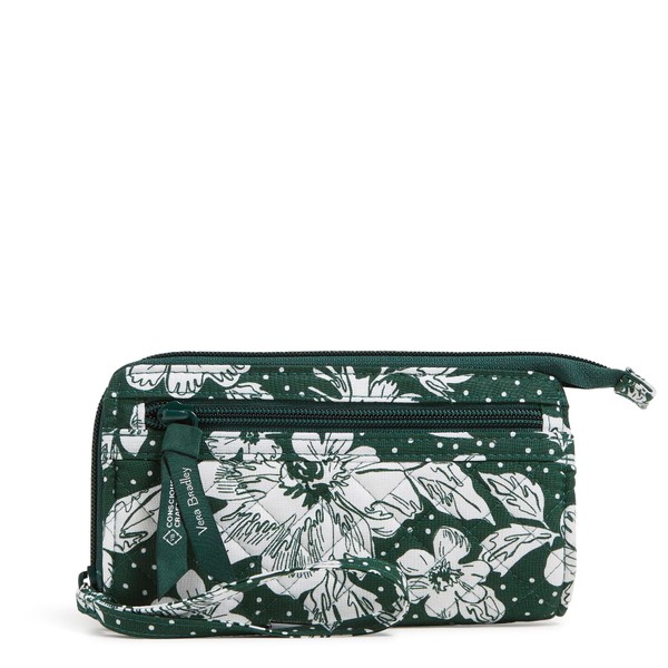 Vera Bradley Unisex's Cotton Collegiate Front Zip Wristlet with RFID Protection (Multiple Teams Available), Dk Green/White Rain Garden, One Size