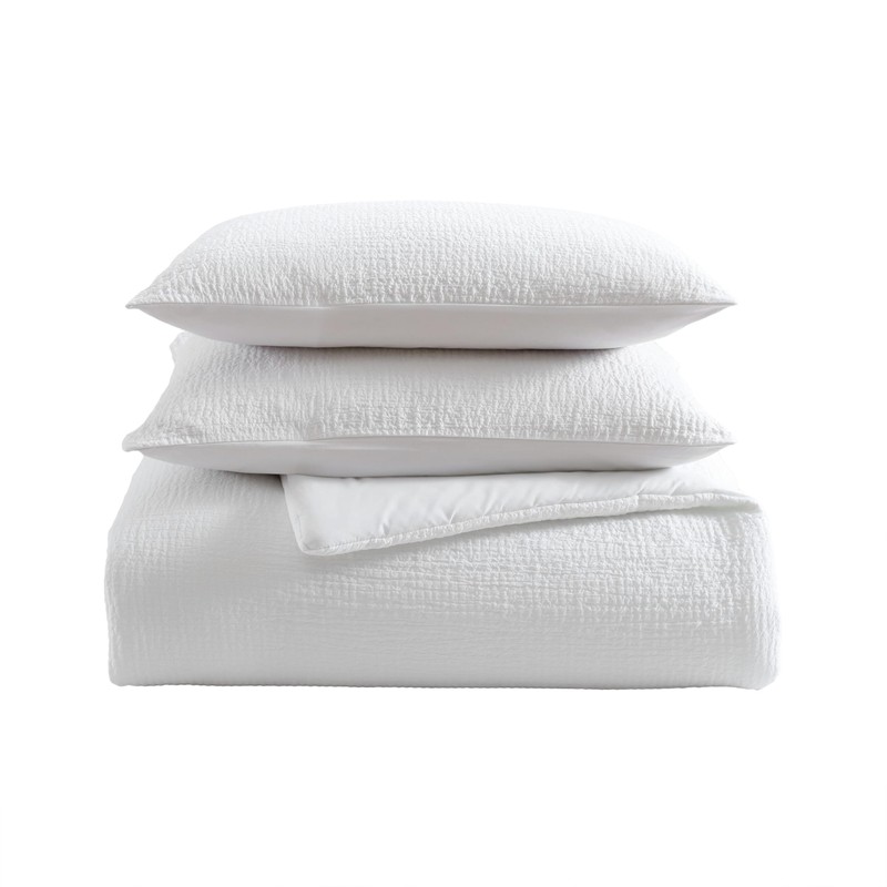 Vera Wang - King Comforter Set, Premium Cotton Bedding with Matching Shams, Modern Home Decor, Oeko-Tex Certified (Puckered Texture White, King)