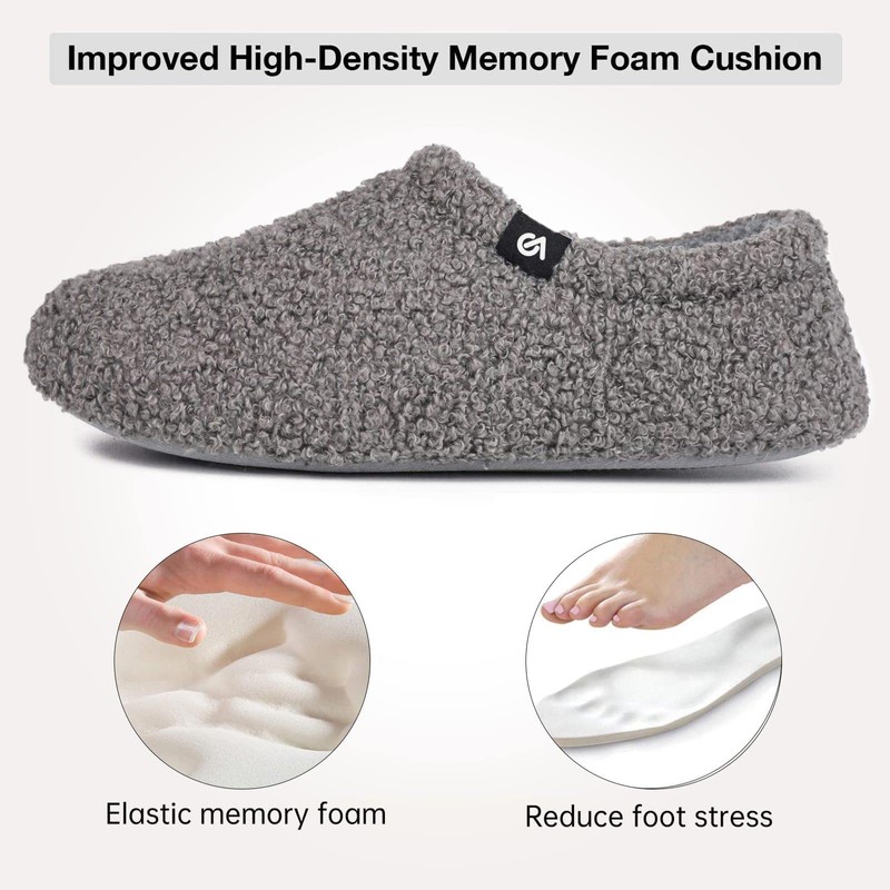 VeraCosy Women's Memory Foam Plush Slippers, Non-Slip Cotton Slippers with Polar Fleece Lining, gray