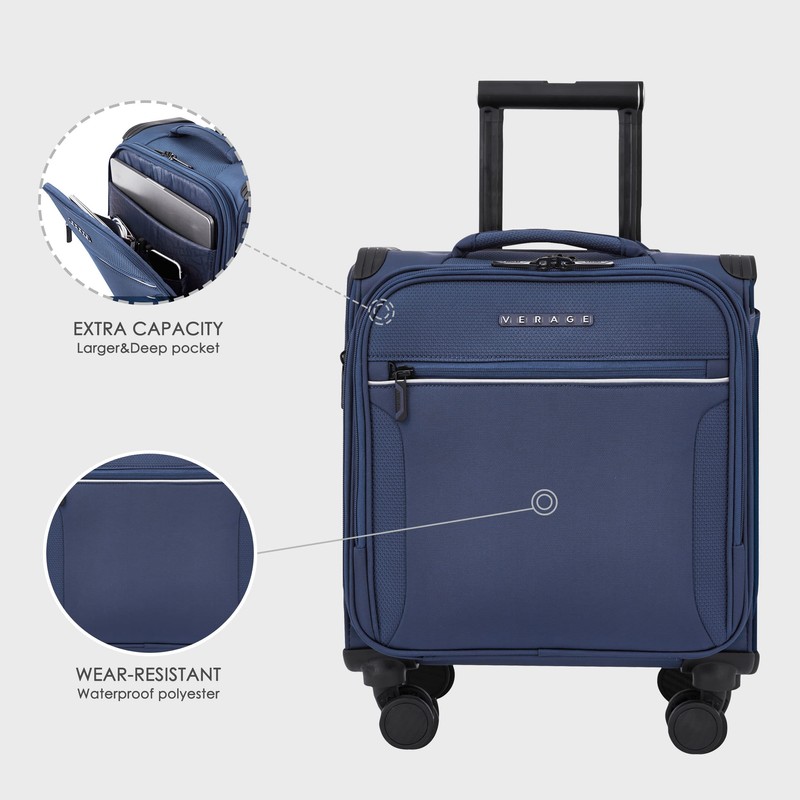 Verage Toledo Carry On Luggage Softside Suitcase with Spinner Wheel (15-Inch, Navy)