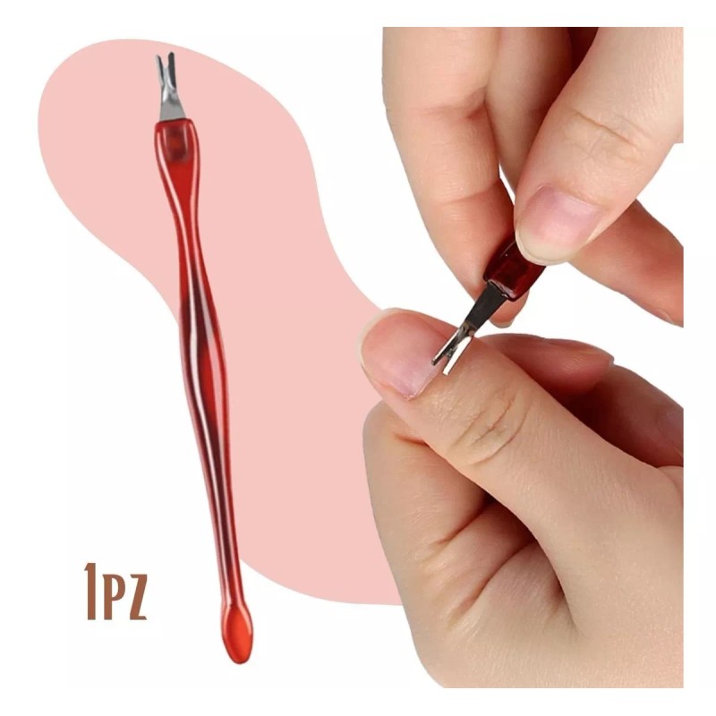 Extremo redondeado se dobla como herramienta empujador de cutículas.