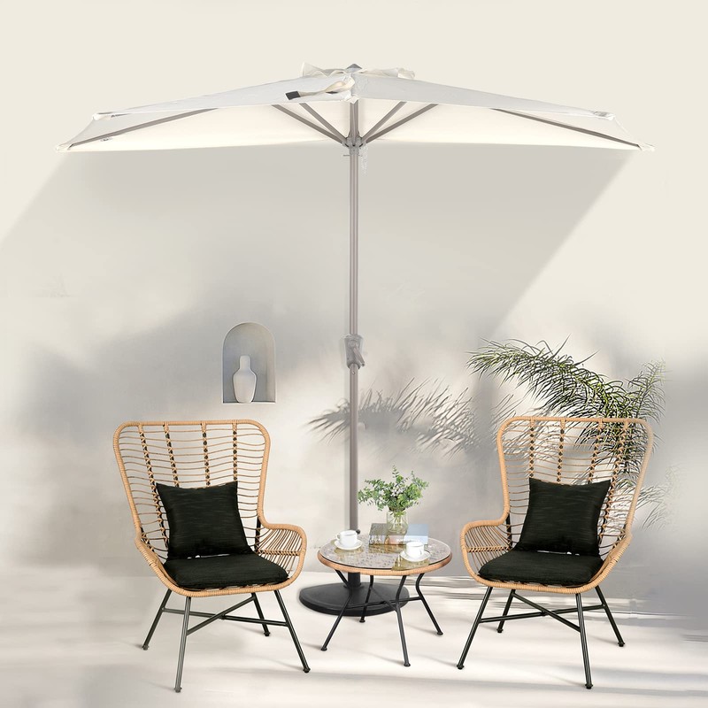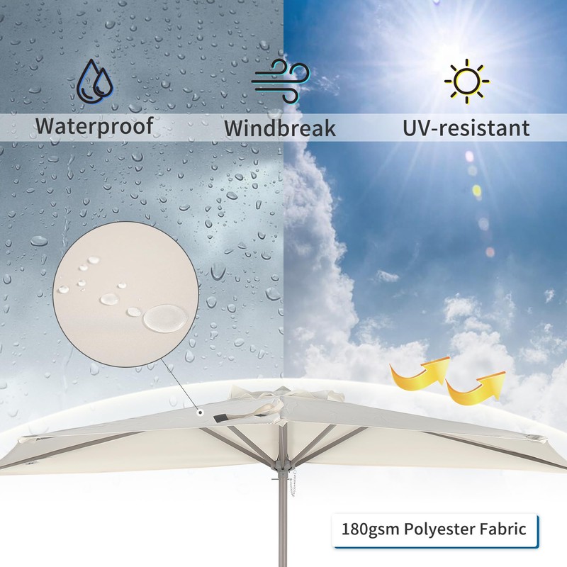 Verano Garden Patio Umbrella 9ft half Round Outdoor Table Market Umbrella with Crank Function for Patio, Deck, Yard, Garden, Cream