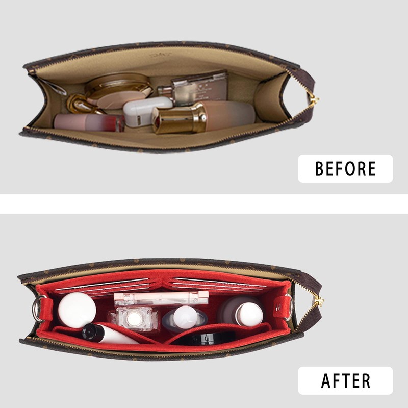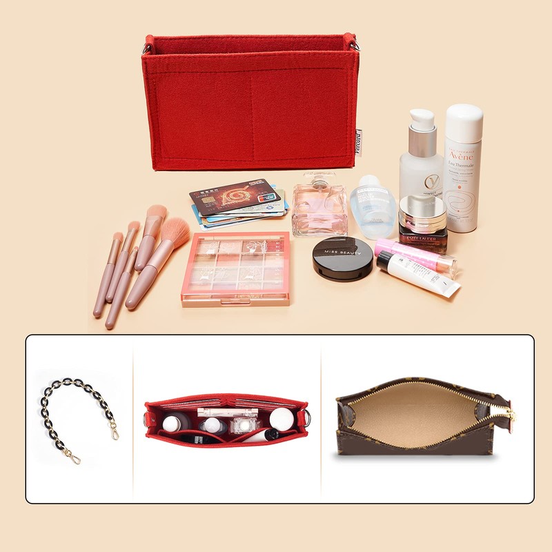 Vercord Felt Purse Insert Organizer 26 19 Toiletry Pouch Insert with D Ring Attach Chain Strap Red S