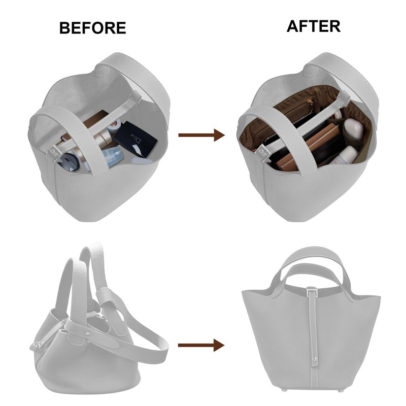 • Size: Small: 6.29*4.72*5.5in (L*W*H) Fits piction18 Large: 7.87*6.29*6.29in (L*W*H) Fits piction22,Please choose the inner bag according to the size of the handbag