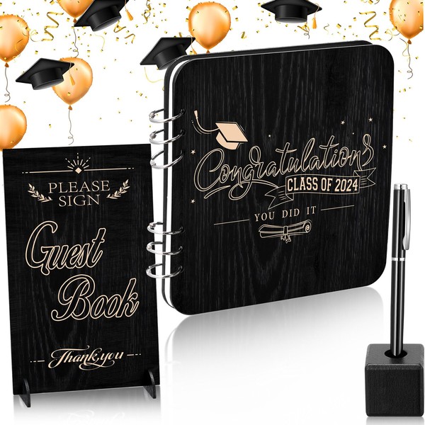 • Ample Space for Memories: measuring about 7.09 x 7.09 inches/ 18 x 18 cm, our graduation guest book 2024 offers you 72 sheets, totally 144 pages to hold numerous photos, signatures, and personal well wishes; Black wood graduation sign measures approximately 4.92 x 8.07 inches