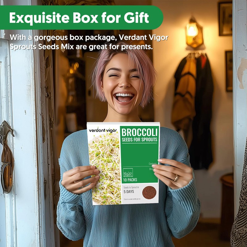 - Exquisite Box for Gift: With a gorgeous box package, Verdant Vigor Sprouts Seeds Mix are great present for housewives, chefs, garden enthusiasts, kids, retirees, survivalists, vegetarians, fresh food lovers, emergency supplies, and more. Let's prepare a unique present for friends and family in this happy memorable Christmas