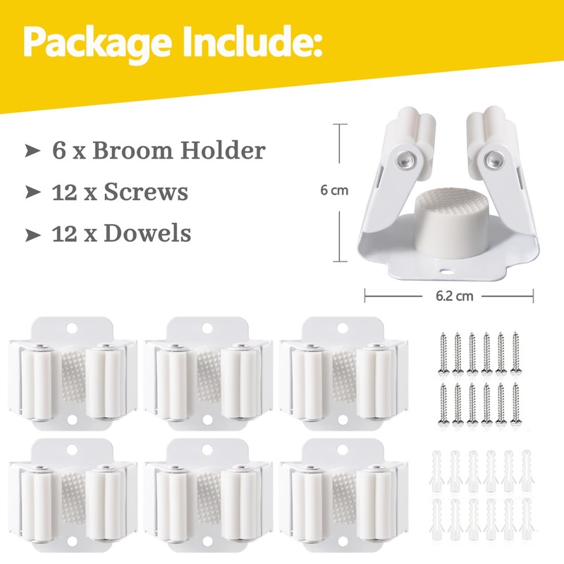 - 🔊Space-saving: Can be attached individually and placed individually. Once you clamp the broom handle into the triangular clip, it automatically adjusts to the different thicknesses of the handles and locks it without slipping.