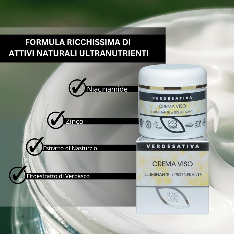 VERDESATIVA Aufhellende und regenerierende Gesichtscreme – 50 ml – mit Niacinamid, Zink, Aloe und Hyaluronsäure – Detox-Effekt und gleichmäßiger Effekt für stumpfe und stumpfe Haut – Made in Italy