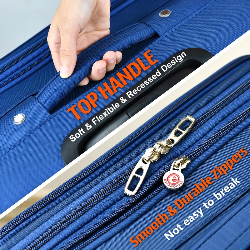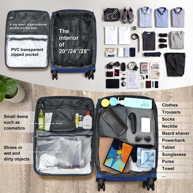 - Keep your belongings organized: The suitcase sets with wheels features scuff-resistant polyester fabric and high tensile strength zipper pulls. It has one PVC transparent zipped pocket. Big mesh organizational pocket on one side to keep everything tidy