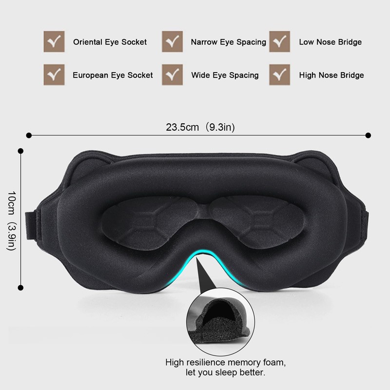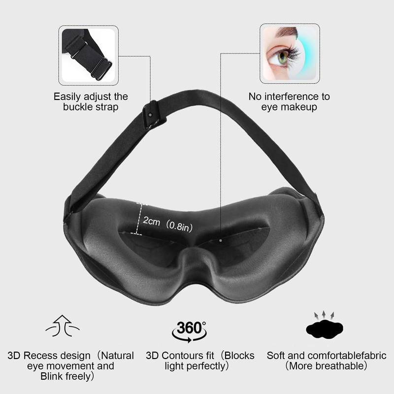 - Einzigartiges sicheres Design: Hochelastischer Memory-Schaum, weiche und bequeme Schlafmaske, lässt Sie besser schlafen. Futter aus Memory-Schaum und hochwertigem Fasergewebe, hinterlässt keine Flecken auf Bettwäsche oder Kissen. Mit dem einzigartigen, verstellbaren, schmerzlosen Kopfgummiband können Sie den Schnallenriemen einfach einstellen. Passend für alle Kopfgrößen, einfach einzustellen und verfängt sich nicht an Haaren.
