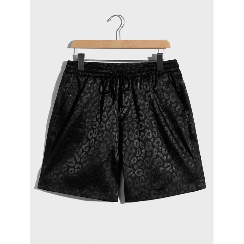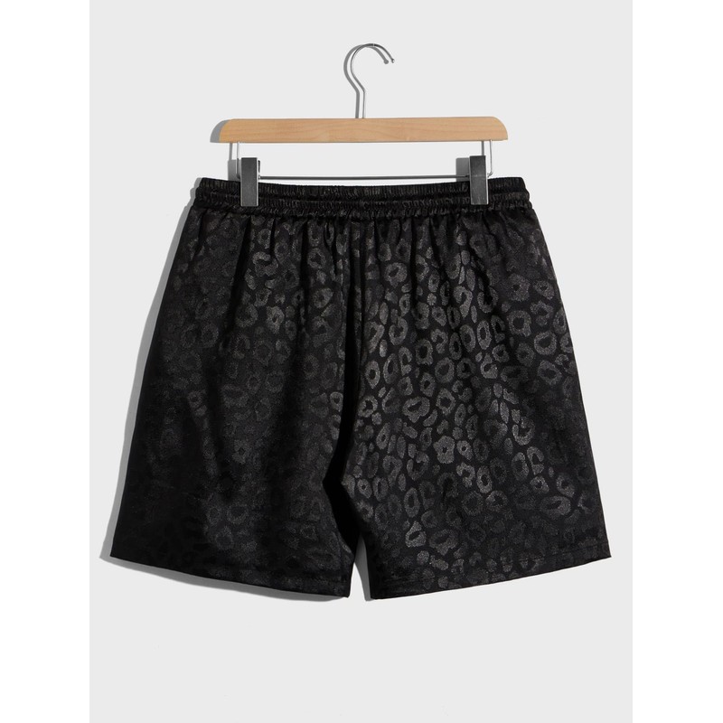 - Lapel Collar, Short Sleeve, Button Down, Leopard Jacquard, Blouse Shirts and Shorts Set