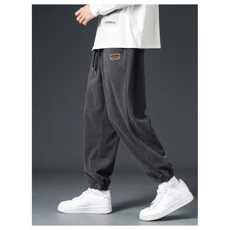 - Letter Patched, Slant Pockets, Elastic Drawstring Waist, Casual Pants, Streetwear Men