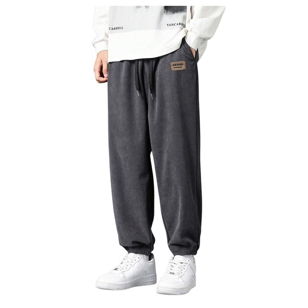 Verdusa Men's Drawstring Waist Corduroy Pants Casual Jogger Pants with Pockets Dark Grey Large