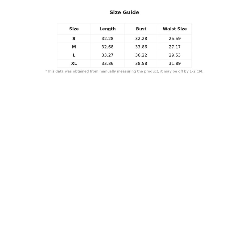 S:Bust:32.3IN,Length:32.3IN,Waist Size:25.6IN
