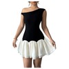 Verdusa Women's Color Block Ruffle Off Shoulder Dress Drop Waist Layered Mesh Mini Dress Black X-Large